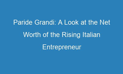 BiographyParide Grandi: A Look at the Net Worth of the Rising Italian EntrepreneurIntroduction In these modern times, there are a lot of great entrepreneurs that are emerging in different parts of the Read More