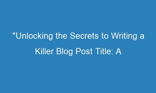 Introduction: Unlocking the Secrets to Writing a Killer Blog Post Title Have you ever spent hours crafting the perfect blog